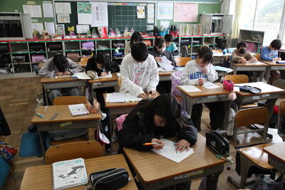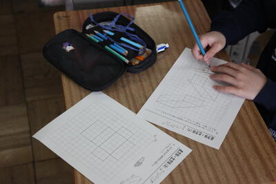 4年生は展開図と立体図の勉強をしていました。空間認知が試される難しい単元