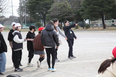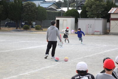 今日は6年生が、校庭で学年のお楽しみ会を行っていました。