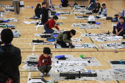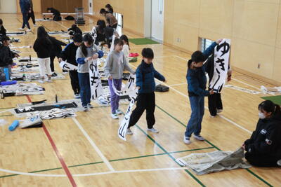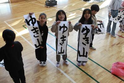 今日は3・4年生の校内書き初め大会の日です。3年生はだるま筆に慣れていない