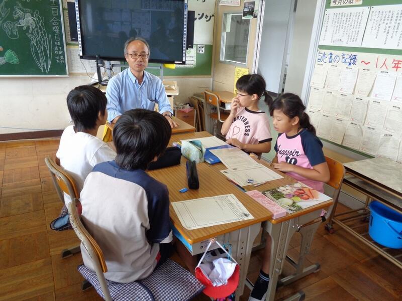 各班に1人ずつ担当していただき,質問に丁寧に答えていただきました。子ども達からは「どのような気持ちでお米を作っていますか」「柏の野菜の特徴はありますか」「農業をやっていて大変なことは何ですか」「どうすれば農業に興味を持つ人が増えると思いますか」「野菜のおいしい料理方法はありますか」等とたくさんの質問が出て,農家の方と直接話ができ貴重な時間となりました。