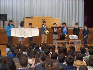 終業式の前に,児童会よりユニセフ募金の報告がありました。みんなの協力で,たくさんの募金が集まりました。
