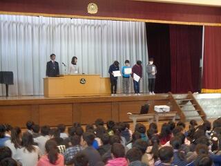 また,作品展やコンクール,水泳・ラグビーの表彰がありました。