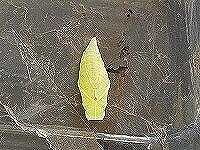 の葉をたくさん食べて、こちらもサナギになりました。サナギのくっつき方がチョウ