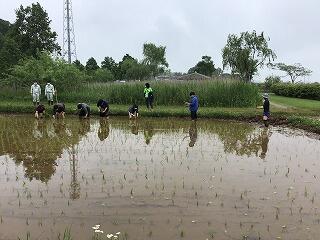 本日,増尾城址公園で田植えを行いました。例年,名戸っ子みんなで田植えをしていましたが,まだ臨時休校期間なので,今年は先生たちで行いました。