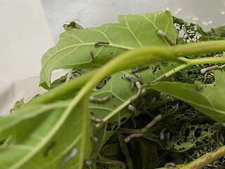 これから,毎日,桑の葉をたくさん食べては脱皮を繰り返し大きくなっていきます。