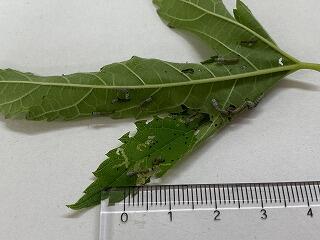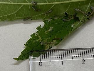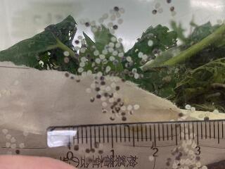 ただいま,先週のような黒い毛虫から脱皮し,2齢の白い幼虫になってきました。