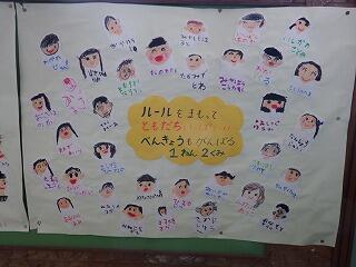 2組は「ルールをまもって,ともだちいっぱい!べんきょうもがんばるクラス」