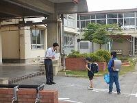 子どもたちが登校したら,昇降口で健康確認をします。お家で体温や体調を記入した健康観察票を持ってきているか,マスクをしているか,体調が悪くないかなど尋ねます。