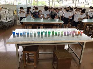 最後に,みんなのコップを明るい色から一列に並べて違いを確かめました。