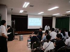 子どもたちは、はじめに、「コミュニティ・スクール」とはどういったものなのか「内容やスローガン」について説明を聞き、さらに、関係している機関や組織、団体の代表の方のそれぞれの「役割や活動」について説明を聞きました。