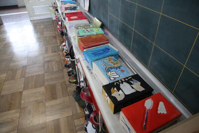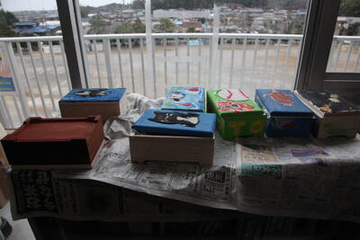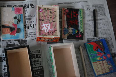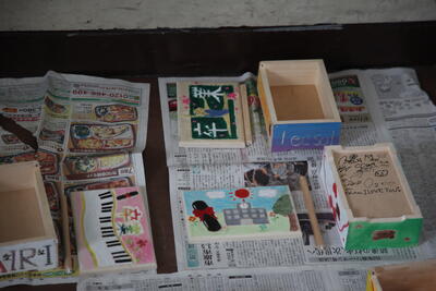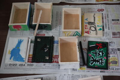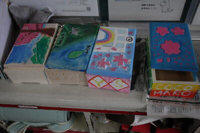 6年生の廊下を歩いていると、卒業記念のオルゴール作品が目に留まりました。1組は廊下、2組は教室にありました。まだ完成までには至っていませんが、カラフルでユニークな作品が沢山見られました。私の家にも教え子たちが作ってくれたオルゴールボックスは今でも飾ってあります。