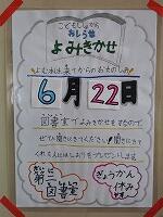 さて。今日は、6年生のこども司書が企画している「読み聞かせ」イベントのポスターを校内に貼りました。7人で話し合い、いろいろな当番を決め、練習して、ここまで来ました。本番は22日の業間休みです。どのくらいのお客さまが来てくれるのか未知数ですが、ようやく他学年の前でも発表できる機会が来ました。皆さんも、応援してあげてくださいね。