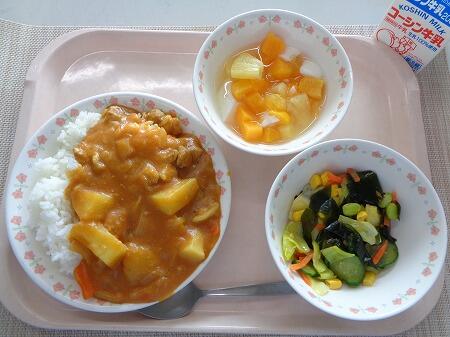 牛乳 ポークカレーライス コーンと枝豆のサラダ フルーツ杏仁豆腐