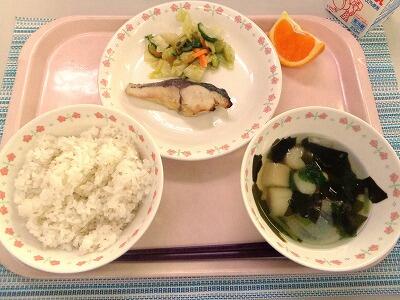 牛乳 ごはん 稲田のニンニク醤油焼き 青大豆いり和え物 若竹汁 かんきつ果物(清見オレンジ)