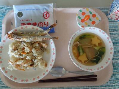 牛乳 ちらしずし (てまきのり) 子持ちシシャモのパン粉焼き 冬瓜のそうめん汁 夢オレンジゼリー