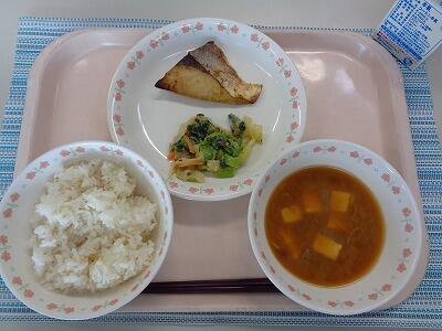 牛乳 ごはん ぶりのカレー焼き ごまあえ なめことおろしのみそしる 冷凍みかん