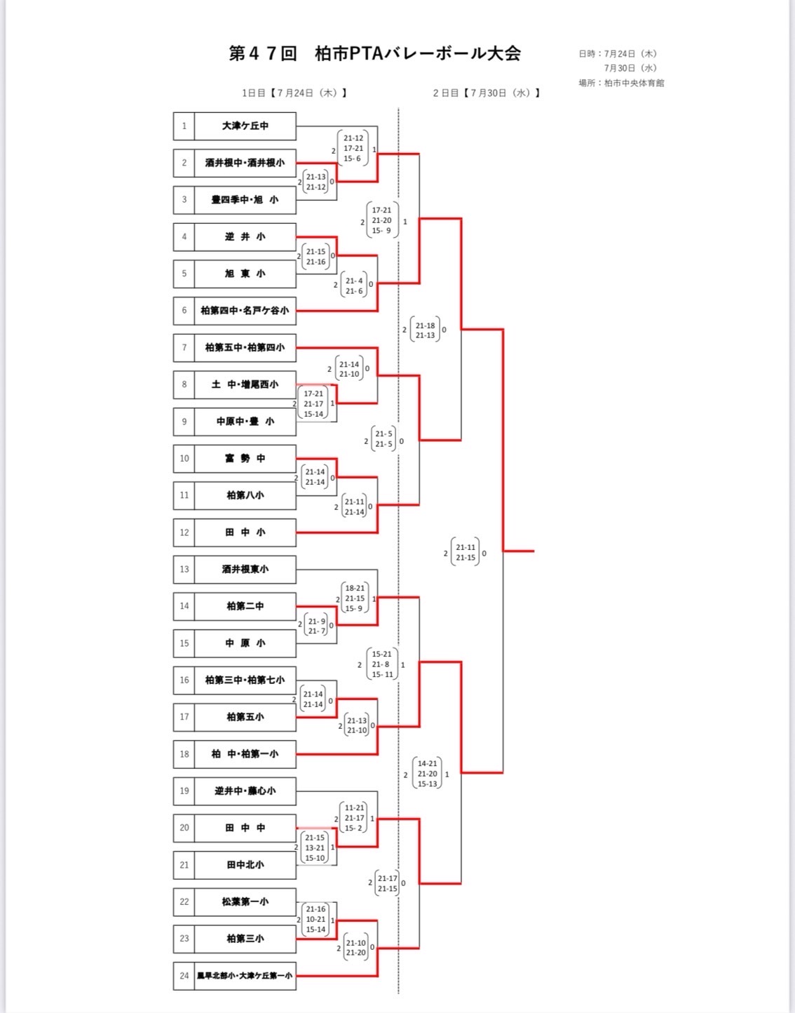 7月30日(水)に「柏市PTAバレーボール大会(決勝)」(柏市中央体育館)がありました。