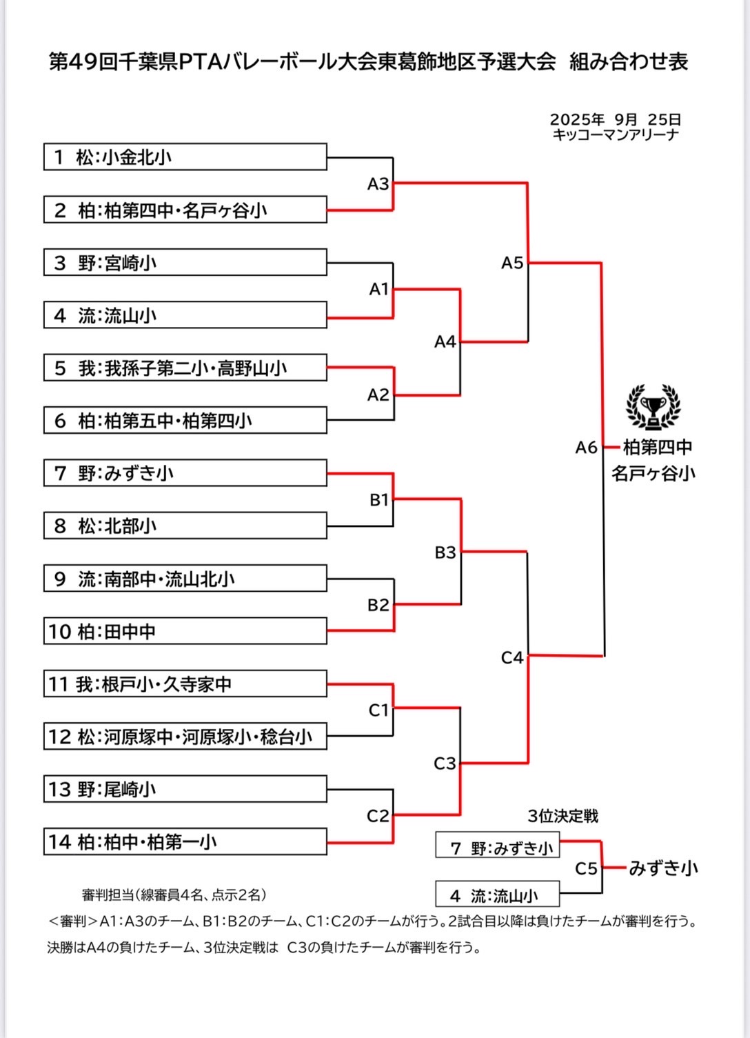 上位4チームが東葛飾地区大会に進出します。