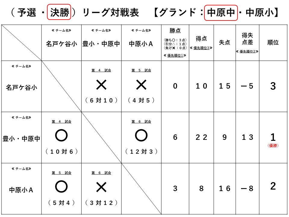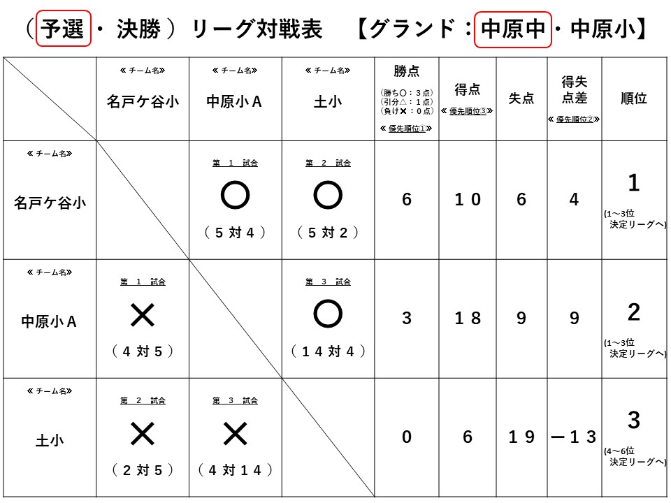 予選リーグは3チーム中1位で、上位リーグ(1~3位決定戦)に進みました。(R071103対戦表結果(予選リーグ).jpg)
