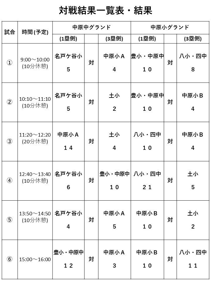 大会参加は6チーム(中原小2、豊小・中原中1、柏八小・柏四中1、土小1、名戸ケ谷小1)で、2グランドに分けて、午前・予選リーグ、午後・決勝リーグとして戦います。