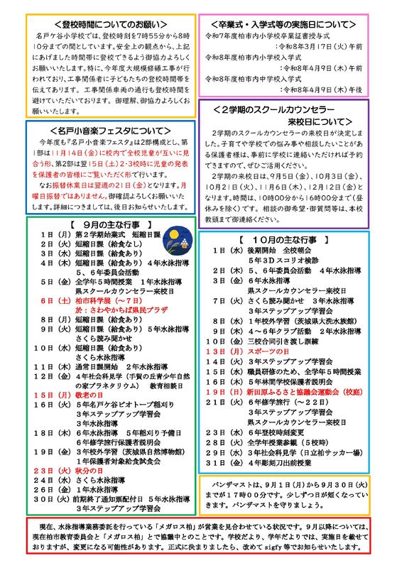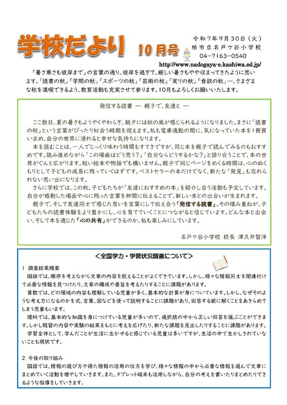 このホームページにおける文章、写真の著作権は、柏市立名戸ケ谷小学校にあります。無断転載は、固くお断りします。