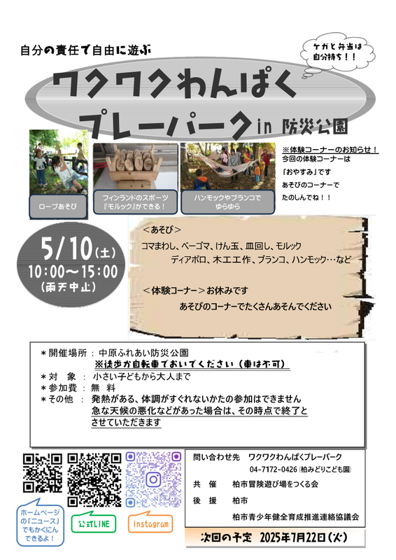 ワクワクわんぱくプレーパークからイベントの案内が来ましたので,お知らせします。