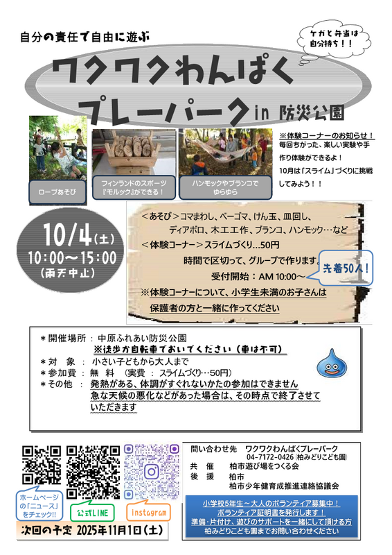 ワクワクわんぱくプレーパークからイベントの案内が来ましたので,お知らせします。