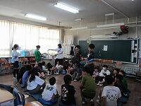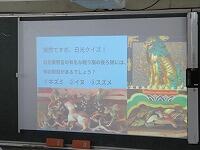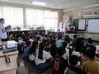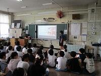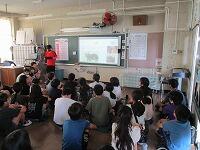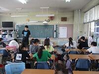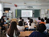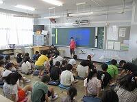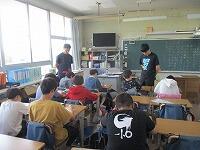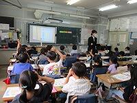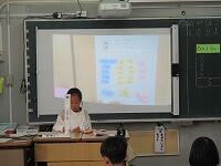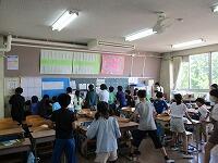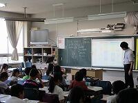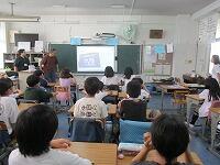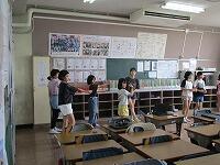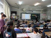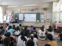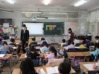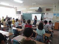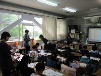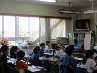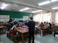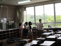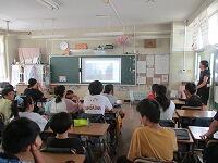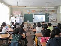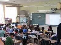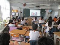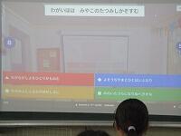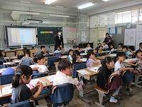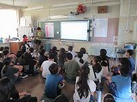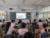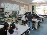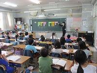 4年生が,外国語活動で,「道案内」の仕方について,学習していました。映像に合わせて,歌を歌っていました。「教室名や道案内に慣れよう」という内容です。担任と外国語授業支援員と一緒に活動しました。