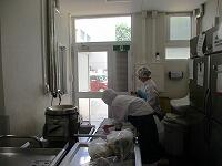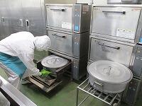 今日は,今年度の『給食最終日』でした。子どもたちは,いつも給食を楽しみにしていました。子どもたちだけでなく,大人も楽しみにしていました。今日の献立は,「6年生の卒業お祝い」で,「赤飯」と「鶏肉のから揚げ」,「磯香あえ」と「お祝いすまし汁」,「デコポン」です。3月最後の給食室の様子です。