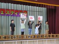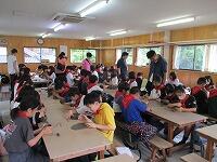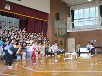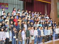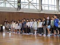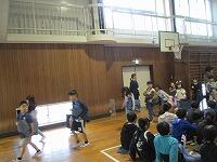 今日は,日差しが弱くて気温が上がらず,朝からとても寒い一日でした。体育館で,先週の1・3・6年生と同じように延期していた,2・4・5年生の『児童会レク』を行いました。『児童会レク』は,他学年との交流が目的で,レクリエーションを通して,他学年との仲を深めるものです。今回も「もうじゅう狩りゲーム」で,お互いに楽しく交流しました。参加者の全体の人数は少なかったですが,「みなさん,とても優秀ですね・・・」文字数と同じグループが作れず,座れなくて「もうじゅう」に食べられてしまう人がほとんど出なかったので,みんなとても喜んでいました。