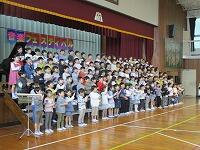 今日は,1年生が生活科の「もうすぐ2年生<だいすきな学校にようこそ>」という学習で保育園と幼稚園の「園児との交流会(わくわく交流会)」を行いました。今回お招きしたのは,豊住保育園,加賀幼稚園,ヴィヴァン保育園,AIAI NURSERYです。1年間の学校生活を振り返り,自分の成長や頑張りを実感するとともに,来年度の新1年生に学校を紹介したり,一緒に遊んだりすることが主なねらいです。