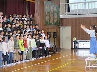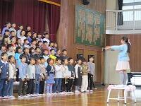 1年生が,音楽の学習で『歌詞に合わせて』,振付けをしていました。大きいものや小さいものなど,体を使って嬉しそうにかわいく表現していました。曲名は,「はる なつ あき ふゆ」です。
