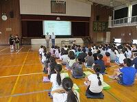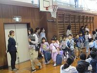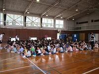 1年生が,体育館に集まって,来週実施する『園児との交流会に向けて』事前指導をしていました。幼稚園や保育園の友達が中原小に来て,1年生と交流を行います。学校を紹介したり,一緒に遊んだりします。当日に向けて,確認することや練習を行いました。