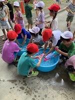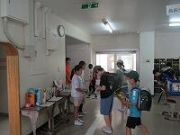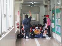 終わった後,スタッフの方が,「今日の水泳学習はどうでしたか」と問いかけると,「楽しかった」「お腹が空いた」という感想が返ってきました。「まだ,この後も授業があると思うので,頑張ってください」「4年生になって,また一緒に水泳ができるのを楽しみにしています」と話されました。