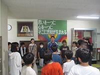 一回一回の練習には,その都度,目標をもって臨んでいます。代表の人がみんなに確認をします。