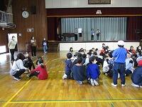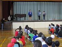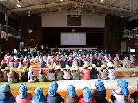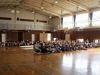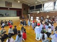 『表彰』が終わって,『全校朝会』が始まりました。今回の『全校朝会』は,今年度,最後となります。最初は,「校長先生の話」です。明日の「節分」にちなんで「心の鬼退治」の話です。青木校長先生は,「人間には誰もが弱い心を持っているものです。心の中に住む目に見えない悪い鬼を追い出して,新鮮な気持ちで春を迎えたいですね。3学期も今年度もあと2ヶ月で終わり,4月には皆さん,それぞれ新しい学年に進級します。一日一日を充実して過ごせるように「心の鬼退治」をして,頑張っていきましょう!」と子どもたちに話しました。