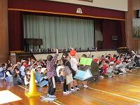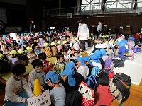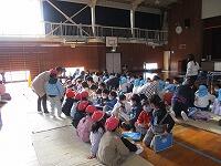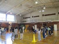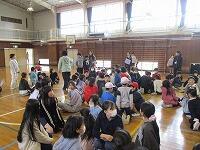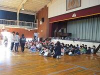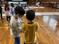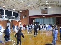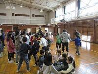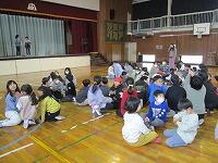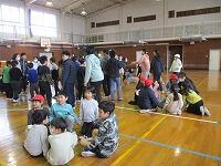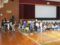 今日は,延期していた『児童会レク』を体育館で行いました。『児童会レク』は,他学年との交流が目的で,レクリエーションを通して,他学年との仲を深めるものです。今回,「もうじゅう狩りゲーム」で,お互いに楽しく交流しました。「もうじゅう狩りゲーム」は,お題の動物などの文字数と同じ数の人数でグループを作ります。グループが作れたら,手をつないで座ります。例えば,「キリン」であれば,3文字なので3人グループを作って座ります。座れないと,「もうじゅう」に食べられてしまいます・・・。