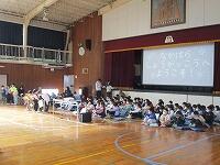 1年の学年主任から,「新入生の生活指導」について説明がありました。「返事やあいさつができるように。何でも話せるように。誰とでも仲良くできるように。また,相手の顔を見て話を聞けるように」と話しました。