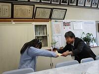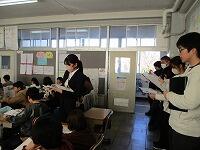 今回の『あいさつ運動』は,中学生と一緒に活動しました。正門のところでは,中学生のあいさつの仕方を学ぶこともできました。厳しい寒さが続く中,子どもたちは,元気にあいさつをしていました。1日目と比べると自分からあいさつする子が増えました。「あいさつ運動」の期間が終わっても,笑顔で自分からあいさつができるようになってほしいと思います。