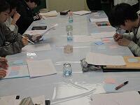 先生方は,ワークシートに自分の考えをまとめ,紙を貼りながら作業していました。