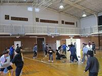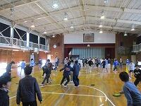 今日は,昼休みに体育館で5年生が,『体育委員会主催レク』を行いました。今月の生活目標は,「寒さに負けない強い体をつくろう」です。寒くても積極的に体を動かすようにという思いで,体育委員会の子どもたちがレクリエーションを考えました。準備もルールも簡単で,楽しめるものです。学年ごとに,日にちを決めて行います。今回は5年生で,4回目になります。ルールは,四角で囲まれた外側から,内側にいる体育委員会の人をソフトフリスビーで当てるというものです。4ゲーム行い,当たった回数をもとに競い合います。ソフトフリスビーをキャッチできたら,セーフです。