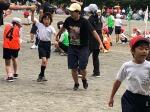 ボランティアの皆さんが見守りながら声をかける中を、子どもたちが懸命に走り抜けていきます。