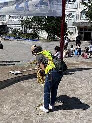 長いロープをもつれさせずに巻くのも、ちょっとしたコツが必要です。