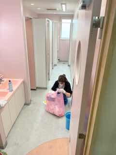終わると隣のトイレ、そこも終わると別のトイレとどんどん移動して、みんなで協力して掃除をしました!