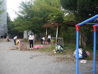運動会の全体練習が行われる校庭の隅に散らばって、落ち葉を集めたり、伸びてきた雑草や笹を刈り込んだりしました。