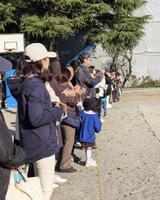 応援する保護者や先生方、応援する子どもたちの声が、澄みきった冬空の校庭に響きます。