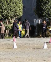 子どもたちのスタート前にそれぞれ担当の立ち位置に向かい、枯れ葉や小石などを取り除いて安全確認を行いました。