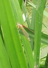 ベニイトトンボ(奥)。