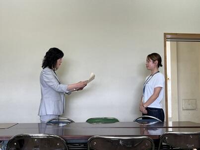 6月22日(土)の土曜参観の合間に、表彰式に参加できなかった受賞者の方に、校長先生より賞状が授与されました。