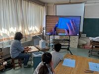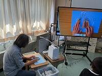 今回は,「ウサギ」の絵を掘っていきます。子どもたちは,集中してモニターを見ています。